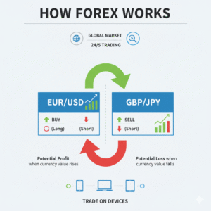 Banyak pemula bertanya, “Bagaimana cara kerja forex sebenarnya?”. Forex, atau foreign exchange, adalah pasar global tempat orang memperdagangkan mata uang. Dengan volume harian lebih dari $6 triliun, forex menjadi pasar keuangan terbesar di dunia.